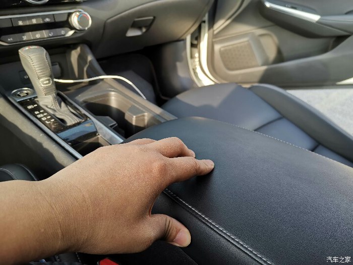 整个中控台都有皮革包覆,软包的好处就是手摸起来很舒服,提升车内的档次,手感极佳