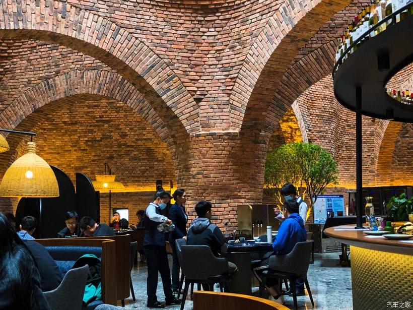 餐厅四壁的采光是通过穹顶这些大小不一的开窗,将外面自然光线引入实现,而且据说里面的光线还会根据四季变化、日照角度随之呈现出不同的效果,非常有意思。