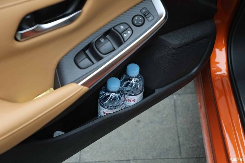 轩逸车内的储物空间也是相当给力,不信看车上被我们四个人塞得满满的矿泉水就知道了。