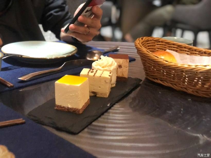 我们各点了一份牛排、意面、沙拉和饭后甜品,这里上菜速度稍慢,饿得不行的我们是来一盘清一盘,最后发现照片都没拍,瞬间感觉亏大了,赶紧趁甜品还没被消灭前拍一张。